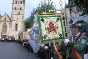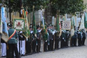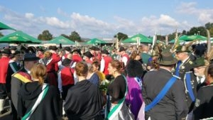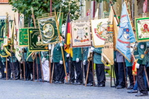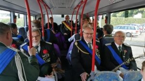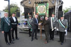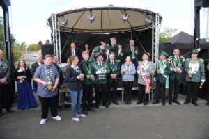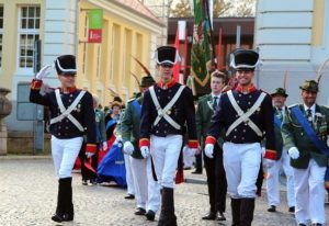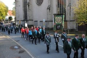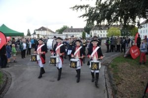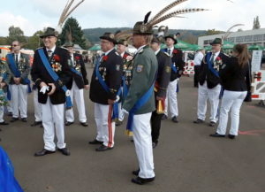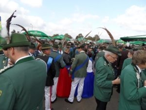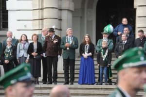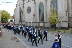 Klar, dass wir unsere Majestäten und den Thron, zu diesem Ereignis begleiteten. Gemeinsam mit unseren Salzufler Schützenkameraden ging es mit dem Bus vom Schötmaraner Marktplatz zur Hammersmith-Kaserne in Herford, wo sich die Massen sammelten und zum Festzug formierten.
