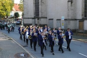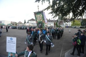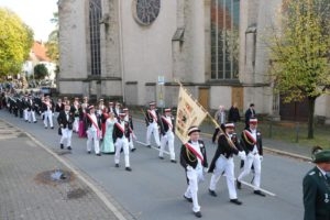 Was für ein Auflauf! Geschätzte 3000 Schützen und Musiker waren am Samstagnachmittag des 5. Oktober beim Festumzug des 70. Westfälischen Schützentags angetreten und zum Rathaus in der Innenstadt marschiert. Bereits 1965 und 1999 war Herford Schauplatz des Westfälischen Schützentags gewesen.