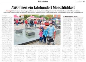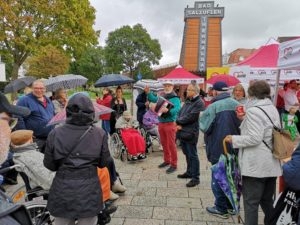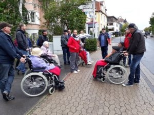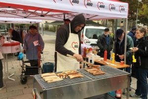 Nun waren es nur noch ein paar Schritte bis zum Platz, auf dem die AWO mit vielen Infoständen und kulinarischen Leckerbissen auf ihre Arbeit und das 100-jährige Bestehen aufmerksam machten. So bekamen noch alle Bewohner und Helfer vor dem Nachhausweg eine leckere Bratwurst zur Stärkung.