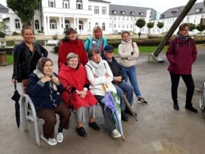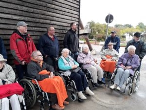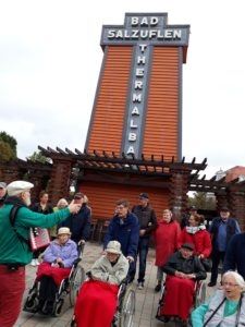 Auf Initiative der Hausleitung hat der Salzufler Stadtführer Jens Leuschner den Bewohnern einen individuellen Rundgang mit vielen Informationen zum Kur- und Badebetrieb aus den Anfangszeiten des heutigen Staatsbades geboten. Dabei konnte er sich wieder der Unterstützung seiner Vereinskameraden der Schützengesellschaft Schötmar und hier besonders der Kilianskompanie sicher sein. Nur durch die vielen Helfer war es möglich, viele in ihrer Mobilität eingeschränkten Bewohner mitzunehmen auf die kurze Reise in die Vergangenheit.