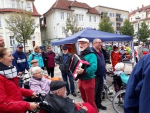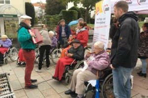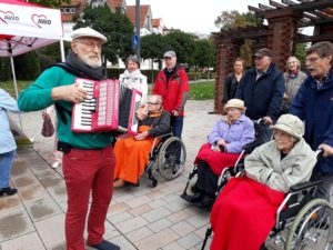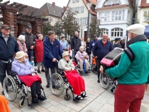 Dazu gab es Live-Musik vom Quetschkommodenspieler, dem es gelang, dass die bekannten Lieder fleißig mitgesungen wurden. Das gefiel auch dem Bürgermeister Dr. Roland Thomas, der es sich nicht nehmen ließ, die Bewohner persönlich zu begrüßen.
