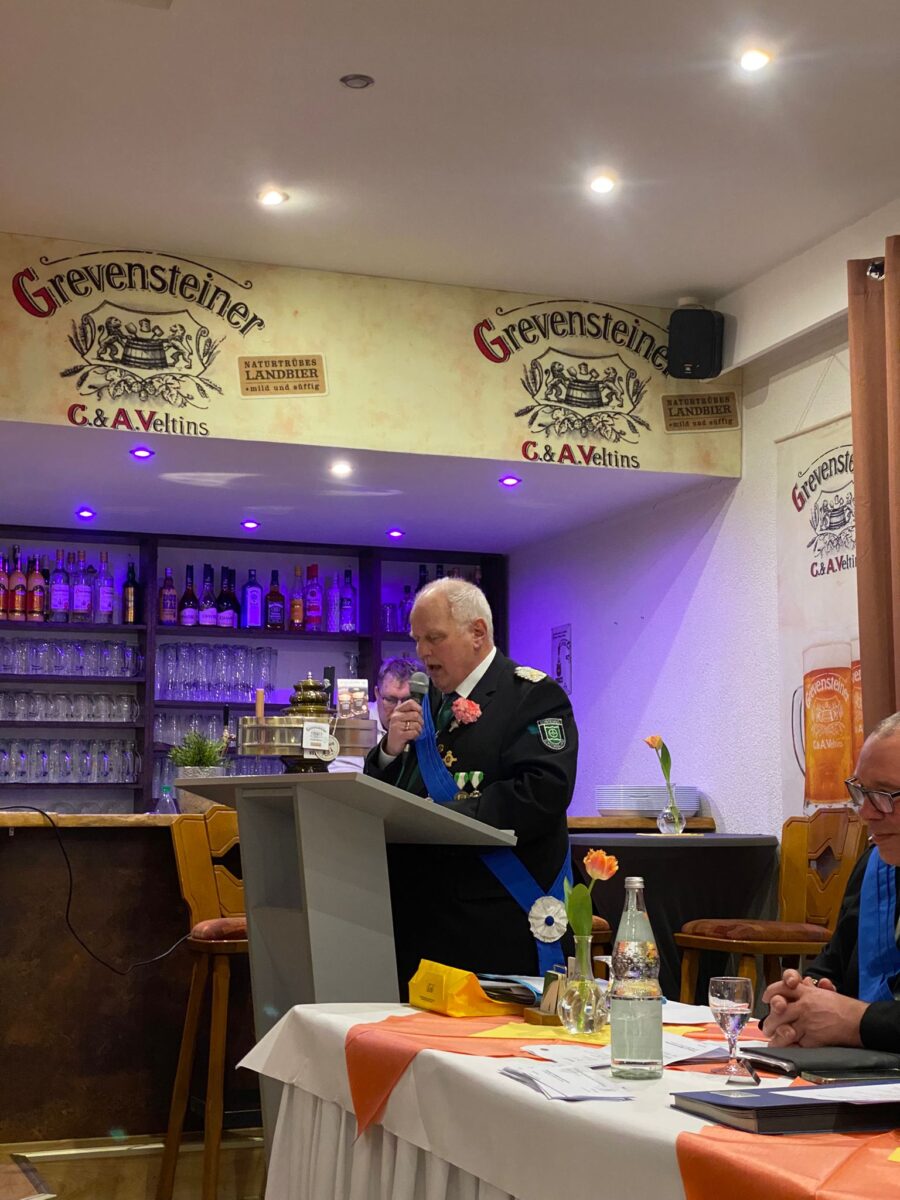 Bei der Versammlung wurde als erstes in Berichten des Vorsitzenden, des Oberst und des weiteren Vorstands das vergangene Jahr Revue passiert.