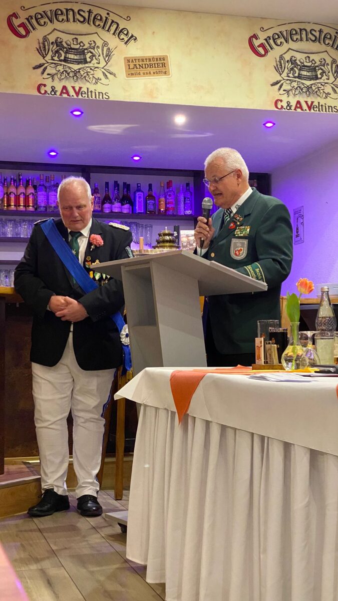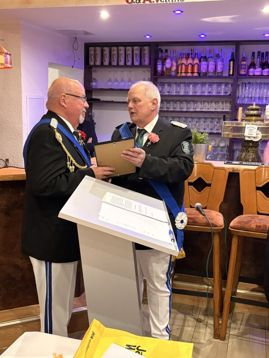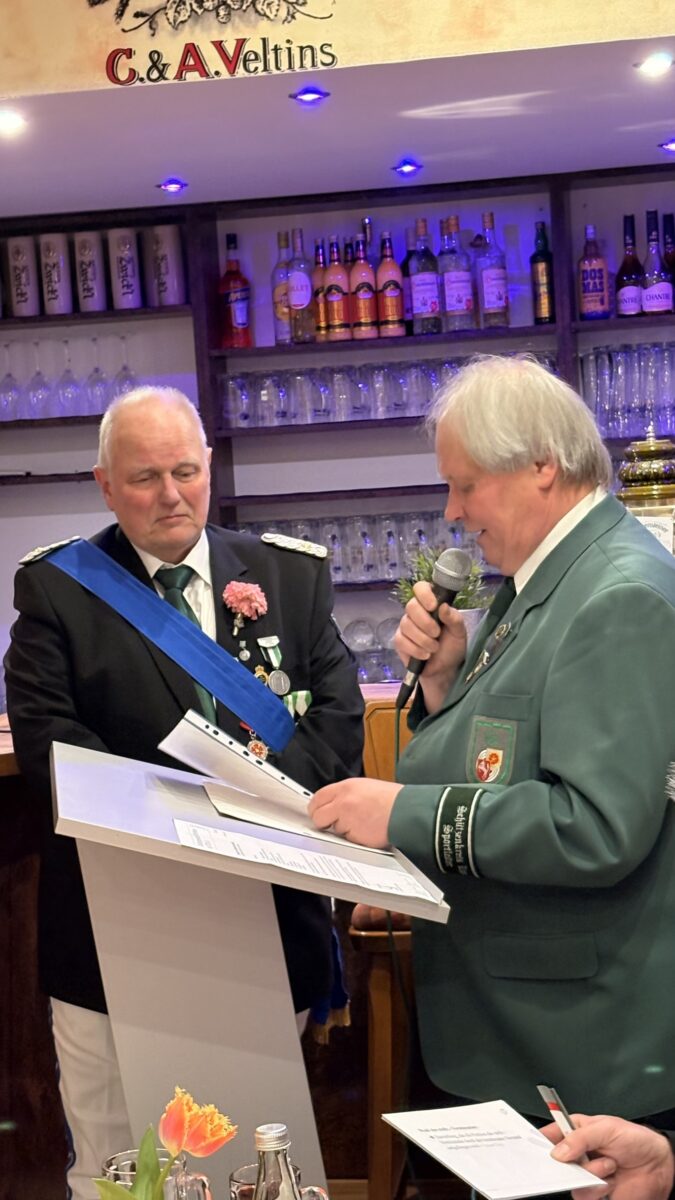 Zum Dank an die 16 Jahre Arbeit im Vorstand als Vorsitzender wurde Uwe Deppe besondere Ehre zu teil. Aus den Händen des Bezirksvorstands bekam er die Kölner Medaille am Schwarz-Weiß-Grünen Bande vom WSB überreicht. Die auf Landesebene höchste Ehrung, die für langjährige Verdienste um das Schützenwesen verliehen werden kann. In einem würdevollen Rahmen wurde diese überreicht.