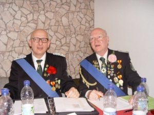 Die in ihren Kompanieversammlungen gewählten Kompaniechefs Jörg Balk (Kilians-Kompanie) und Michael Schüler (Keiler-Kompanie) wurden von der Versammlung als Mitglieder des Gesamtvorstandes bestätigt. Die Adler-Kompanie mussten da leider passen, denn sie hatte keinen Vorstand bilden können und wird vorläufig vom Bataillonsvorstand geführt.