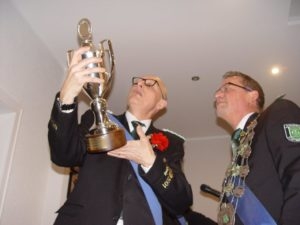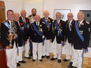 Fortgesetzt wurden die Ehrungen mit der Verleihung der Treueorden. Für 25-jährige Mitgliedschaft wurde Michael Lotter geehrt. 40 Jahre sind die Schützenbrüder Robert Bredefeld und Harry Czeslik Mitglied. Bereits 50 Jahre hält Horst Gieseking der Gesellschaft die Treue. Auf eine 60-jährige Mitgliedschaft können August Klei und „Salem“ Wilhelm Reibke, vielen noch als „Bataillonsspion“ bestens in Erinnerung, zurückblicken