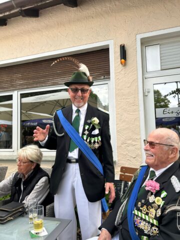 Nach einem ausgelassenen Samstagabend, bei dem sich die Feiernden von DJ-Locke begeistert mitreißen ließen, folgte am Festsonntag das Katerfrühstück. Noch vor dem Gefecht am Frühstücksbuffet hatte Kommandeur Jörg Balk die Truppe zur Ehrung der Vereinsmeister 2024 antreten lassen. Mit fünf Siegen bei fünf Starts, wurde Deborah Brandmeier als erfolgreichste Schützin ausgezeichnet.