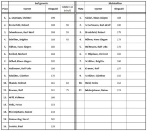 Die neue Idee, speziell für unsere älteren Schützeninnen und Schützen eine auf sie zugeschnittene Meisterschaft auszutragen, fand zur Freude von Btl.-Schießoffizier Ralf-Udo Heitmann eine gute Resonanz. Schützen, die den Anmeldetermin verpasst hatten, mussten leider auf das nächste Jahr vertröstet werden.
